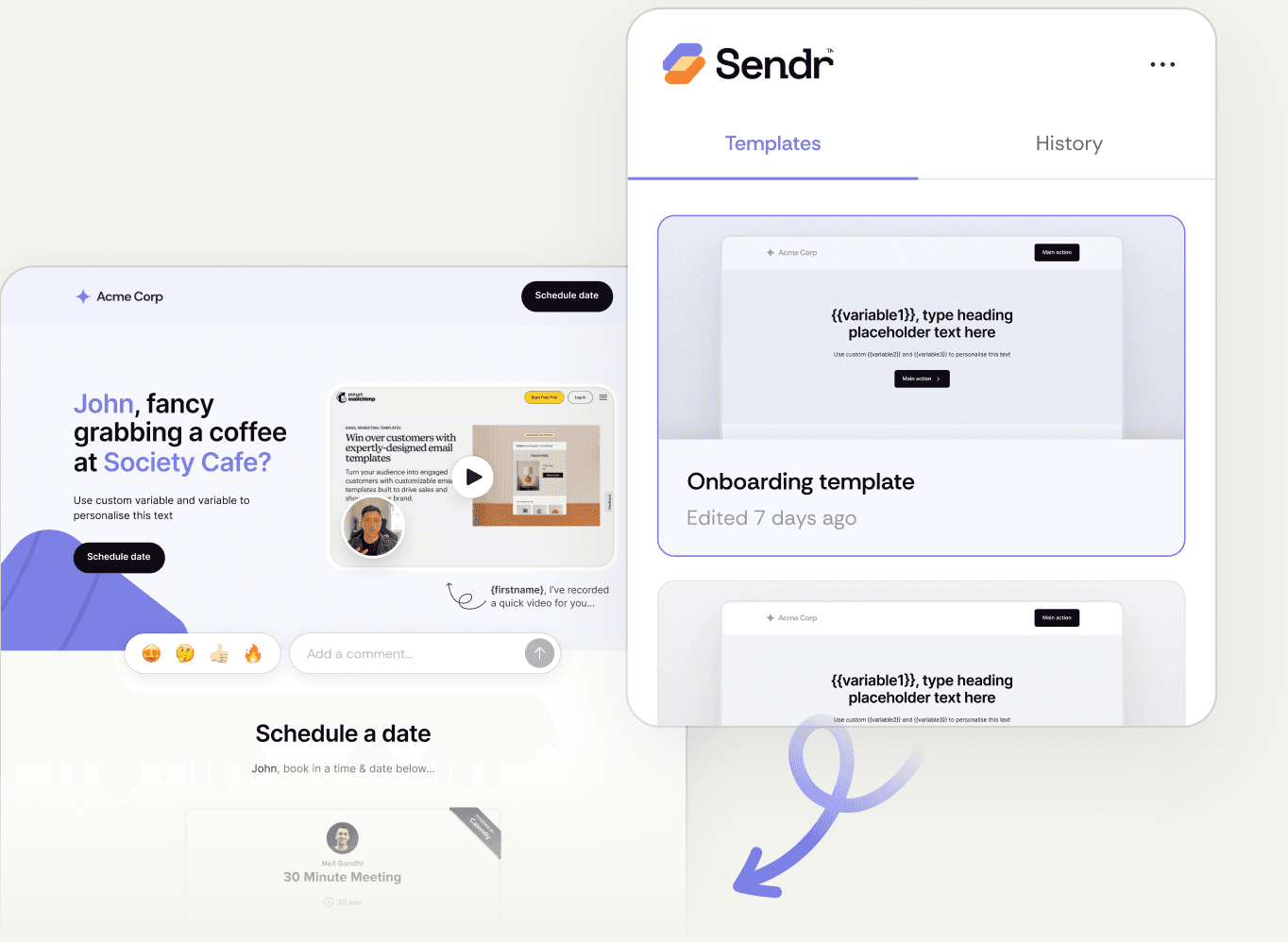 Using our handy Chrome expansion, you quickly create a custom post-pitch landing page, embedding your Google Slide or Figma deck and reference it in your custom video. You send it in a quick follow up email, making sure to attach your eye-catching custom gif or simple link.