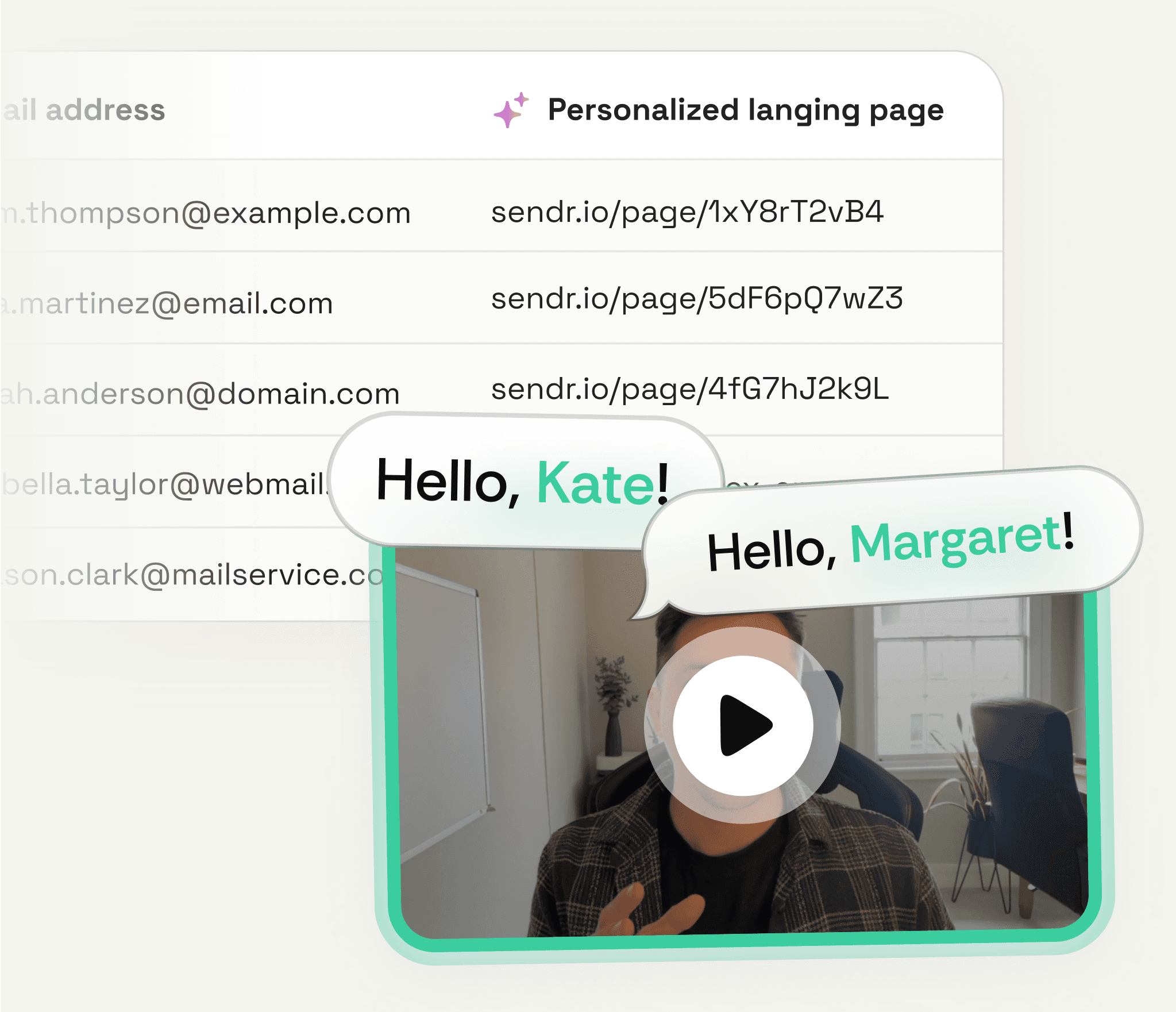 orget generic, text-heavy emails that get put straight in the trash. With Sendr 2.0 you lead each interaction with a personalised video that instantly captures attention. You create branded landing pages, enrich data, embed personalised videos and clickable product demos via Arcade, all with a single click.