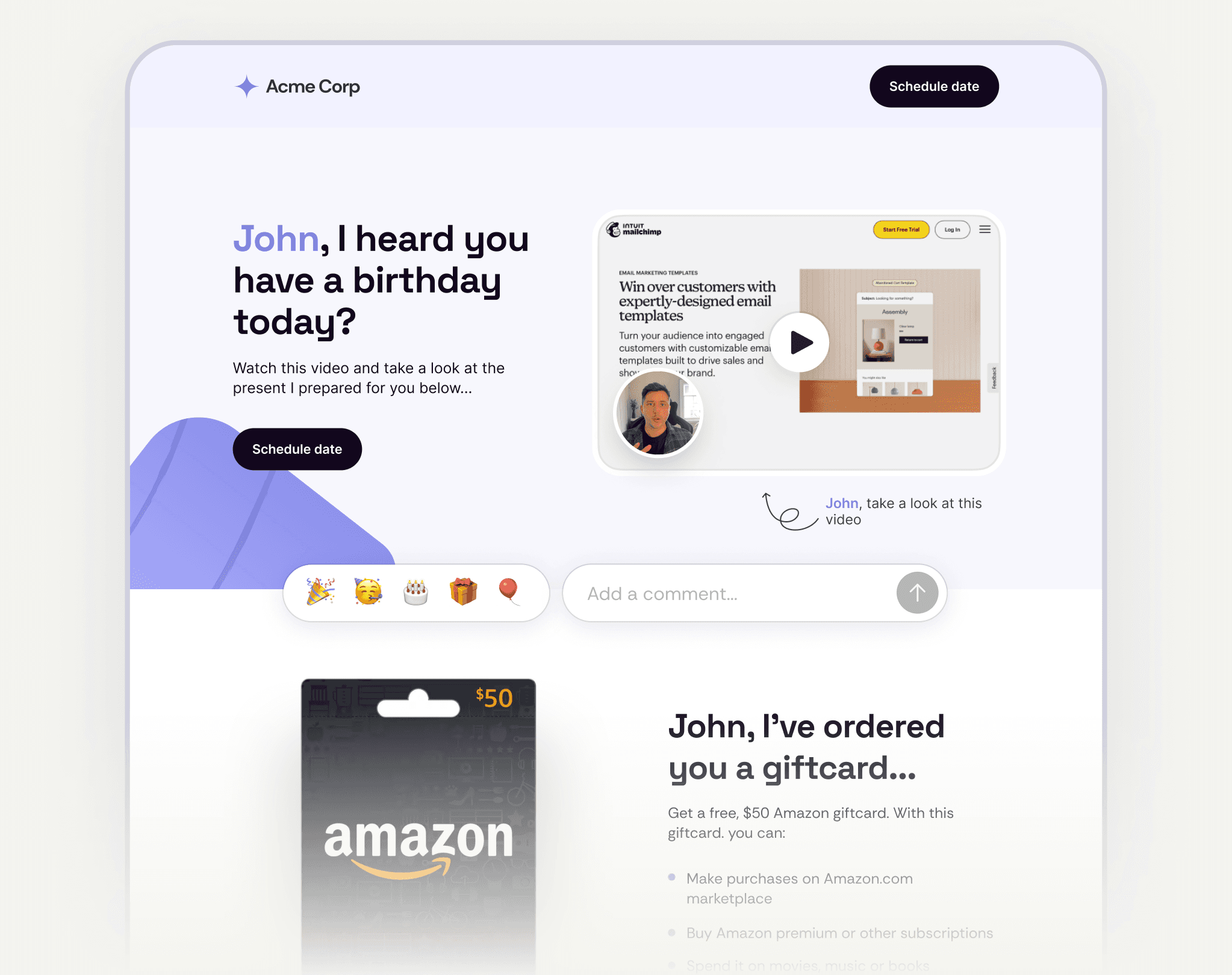 Whether you are sending a digital gift card, a warm birthday message or a simple congratulations, we are here to help you deliver outreach and custom relationship building which is truly authentic and thoughtful.